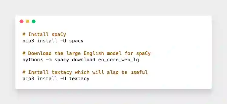 我们默认你已经安装了Python 3。如果没有的话,你知道该怎么做。接下来是安装spaCy: