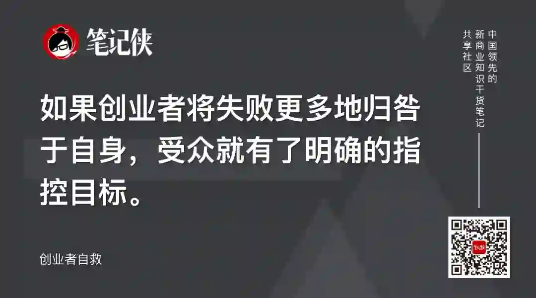 如果创业者将失败更多地归咎于自身,受众就有了明确的指控目标,指控会更多针对创业者个人;