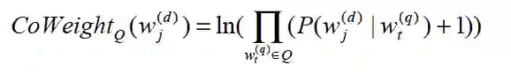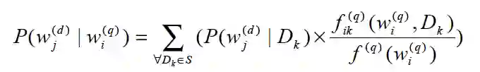 式子右侧括号中分别融合了扩展词在文档集中的先验概率、Query词与文档在交互session中的共现频数以及Query词在交互session中的频数。