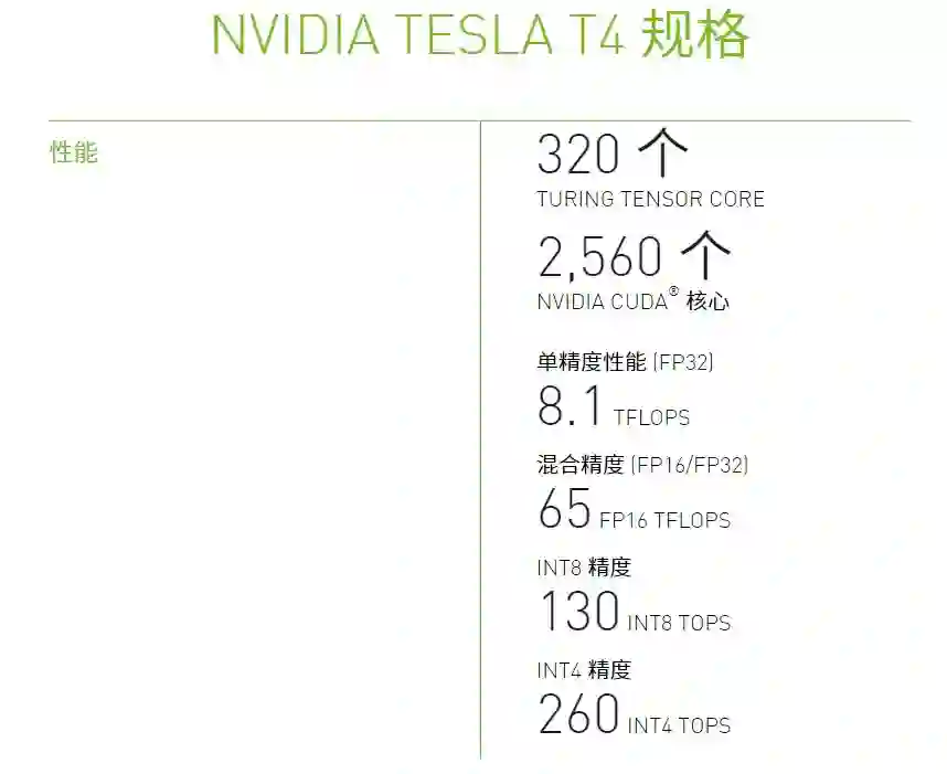 T4 的性能规格如下: