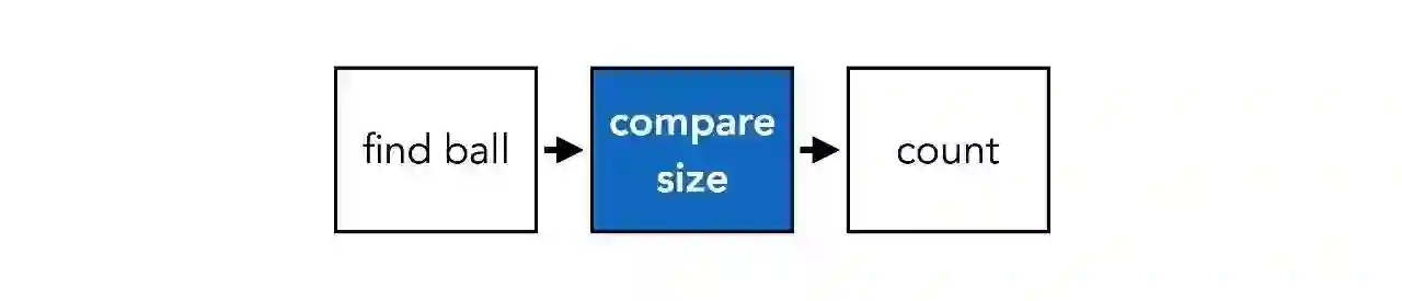 换个问题,步骤也会不一样。当问题为“有多少与球尺寸相同的物体?”,流程图会变成这样: