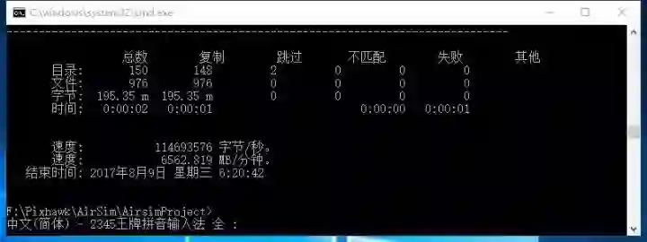 按下 win+R 运行cmd,进入UE工程目录,运行update_airsim.cmd。运行成功后,会将airsim工程的 ~\Plugins\AirSim 文件夹复制到 UE工程。