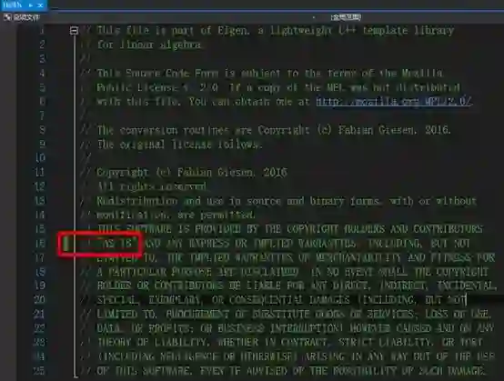 打开half.h文件,将 “AS IS” 的中文引号 修改为 ”AS IS”英文引号 保存即可。