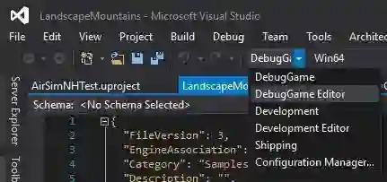 重新在Visual Studio中打开LandscapeMountains.sln ,确保VS的build配置为 "DebugGame