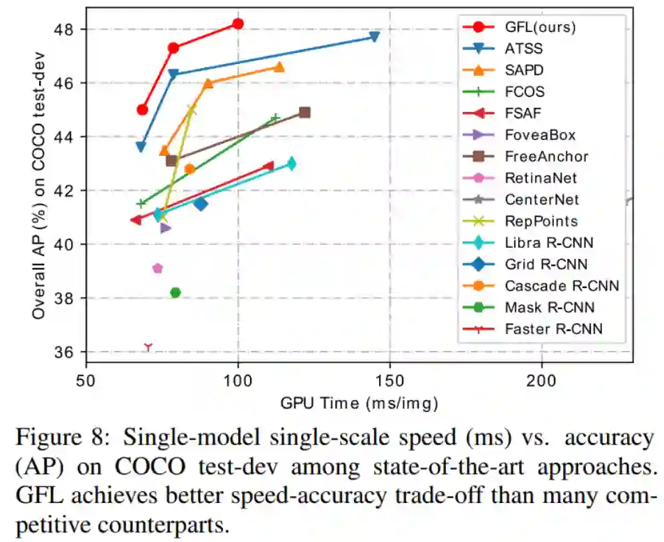 实际上QFL还省掉了原来ATSS的centerness那个分支,不过DFL因为引入分布表示需要多回归一些变量,所以一来一去inference的时间基本上也没什么变化。