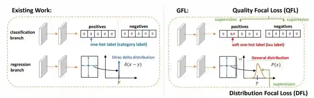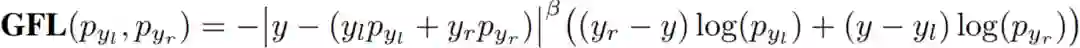 其形式上与QFL的右半部分很类似,含义是以类似交叉熵的形式去优化与标签y最接近的一左一右两个位置的概率,从而让网络快速地聚焦到目标位置的邻近区域的分布中去。