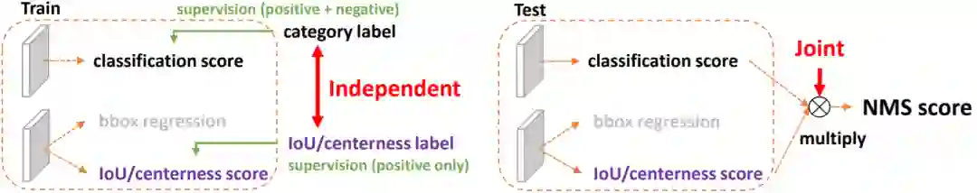 训练的时候,分类和质量估计各自训记几个儿的,但测试的时候却又是乘在一起作为NMS score排序的依据,这个操作显然没有end-to-end,必然存在一定的gap。