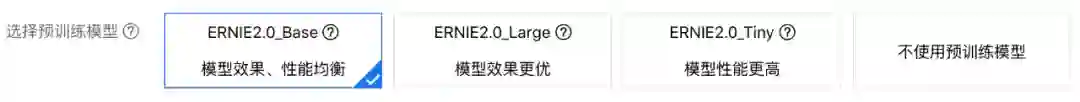 目前,EasyDL平台经典版和专业版均新增了这项功能,在“专业版”的任务配置过程中,开发者还可选择ERNIE Tiny、ERNIE Large、ERNIE Base三种各有所长的预训练模型。