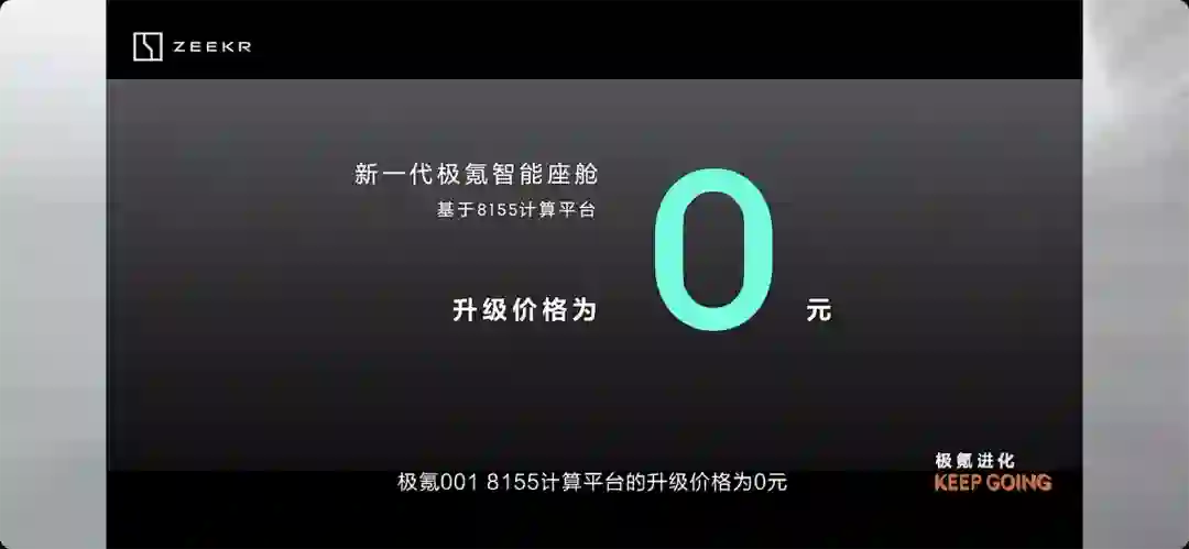 极氪的“0 元购”是极氪基于已有老车主数量、硬件更换与新系统开发成本等各种因素提出的方案,就是通过免费升级,让大家一起拥抱新款处理器,以可接受的成本统一所有车辆的硬件,这样中短期内就不必考虑软件升级“向下兼容”的问题,某种程度上降低了额外的软件开发成本。
