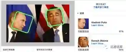 左侧图片是被检测的图片,我们看到其实普京是一张侧脸,奥巴马则是一个鬼脸。Rekognition给出的识别结果,虽然在置信度方面没有达到100%,但是也给出了足以让人满意的识别结果。