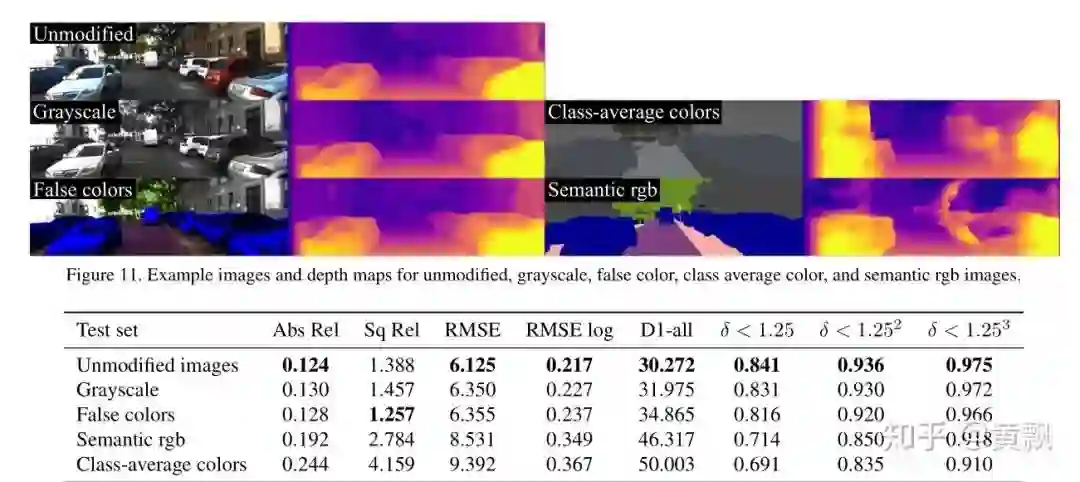 最后作者还讨论了颜色和纹理对深度估计的影响: