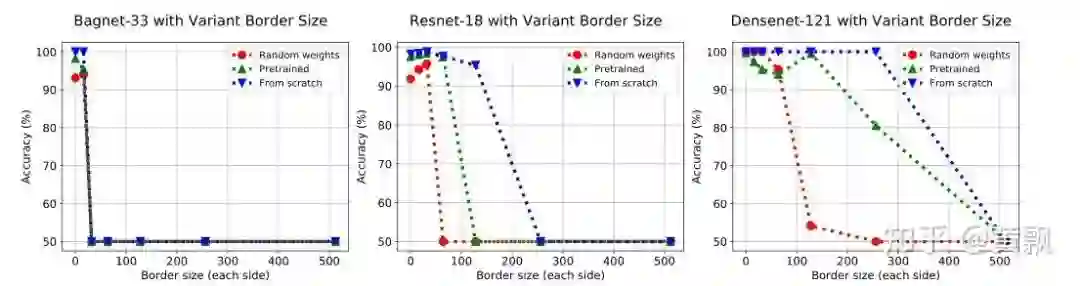 由此引出距离图像边界多远时某一固定像素可以被检测到这一问题,于是作者通过给图片四周添加不同大小的黑色边界进行试验:
