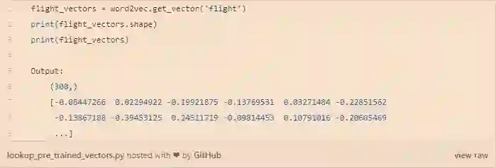 这些步骤使我们能够使用来自Word2vec库的预训练向量。