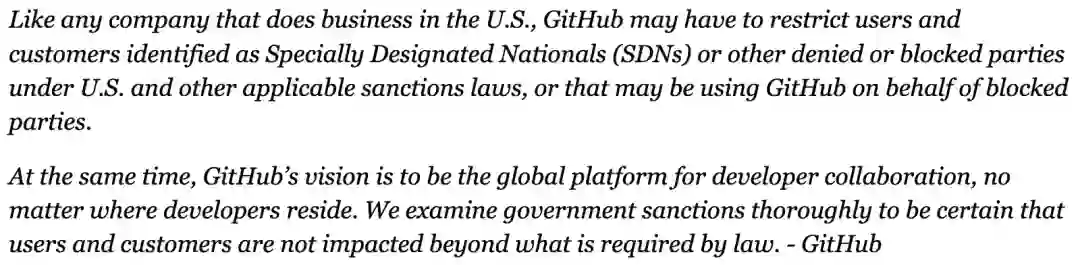 毕竟作为美国企业的Github在3月底的官方博文中有明确提到: