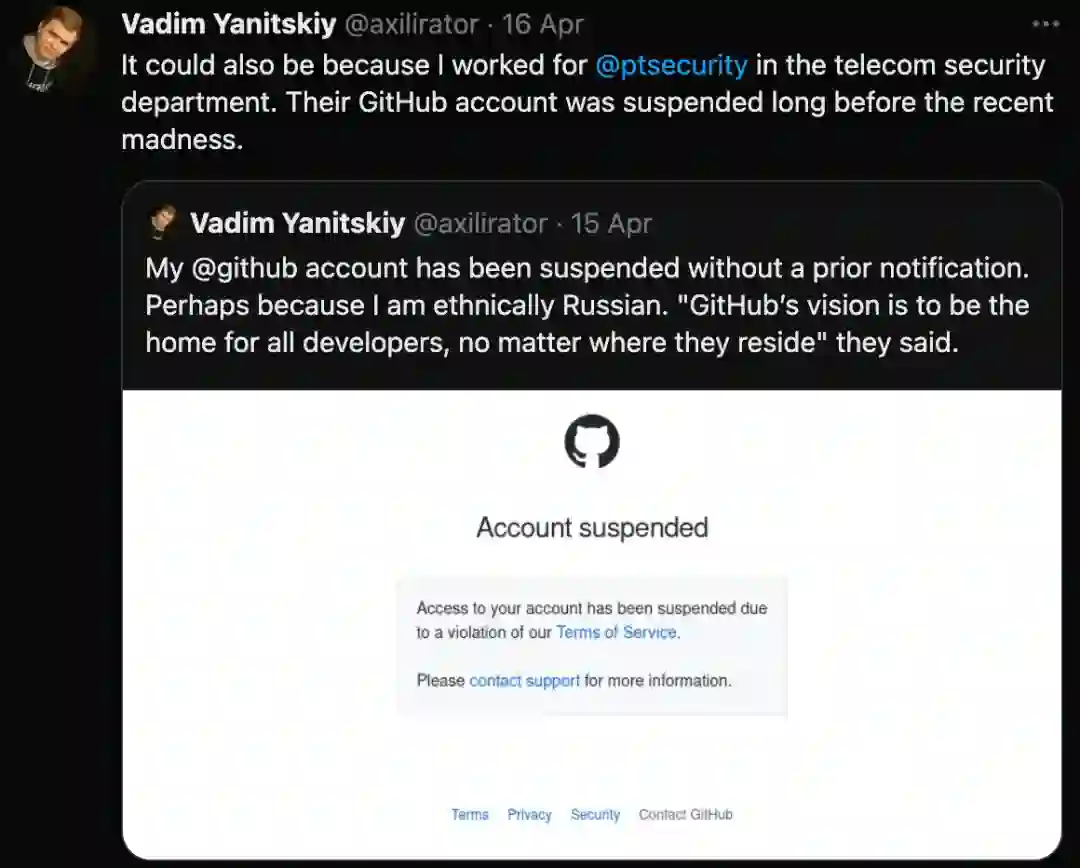 公告链接:https://GitHub.blog/2022-03-02-our-response-to-the-war-in-ukraine/