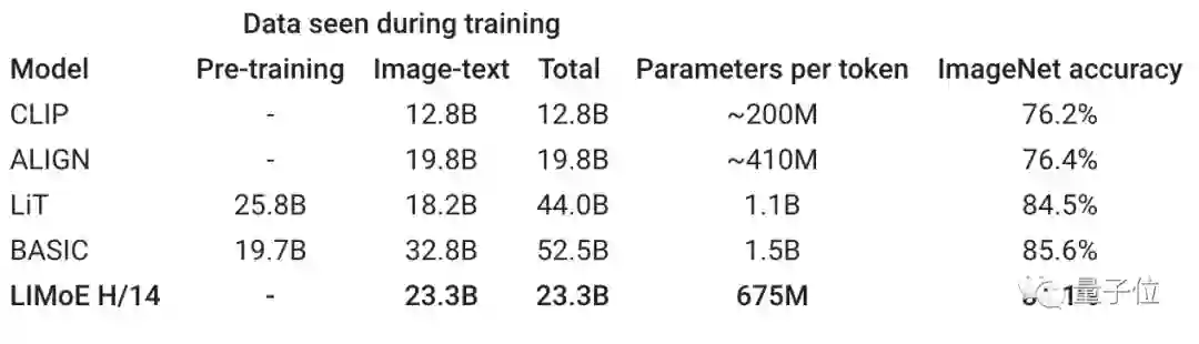 如果一次任务中只使用了一个子模型,那它的成本和标准Transformer的差不多。比如LIMoE-H/14总共有5.6B参数,但是通过稀疏化,它只会使用每个token的675M参数。