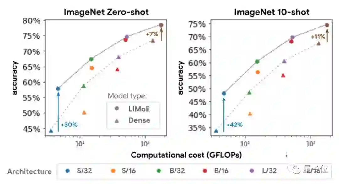 它们在模型内部设置了很多“专家”,每个“专家”只需处理对应部分的输入,根据任务情况按需使用“专家”就好。这样一来,尽管模型容量很大,但是计算成本并没有暴增。而且还不会降低性能。新方法LIMoE零样本学习任务中,可是直接超越了CLIP。怪不得网友高呼: