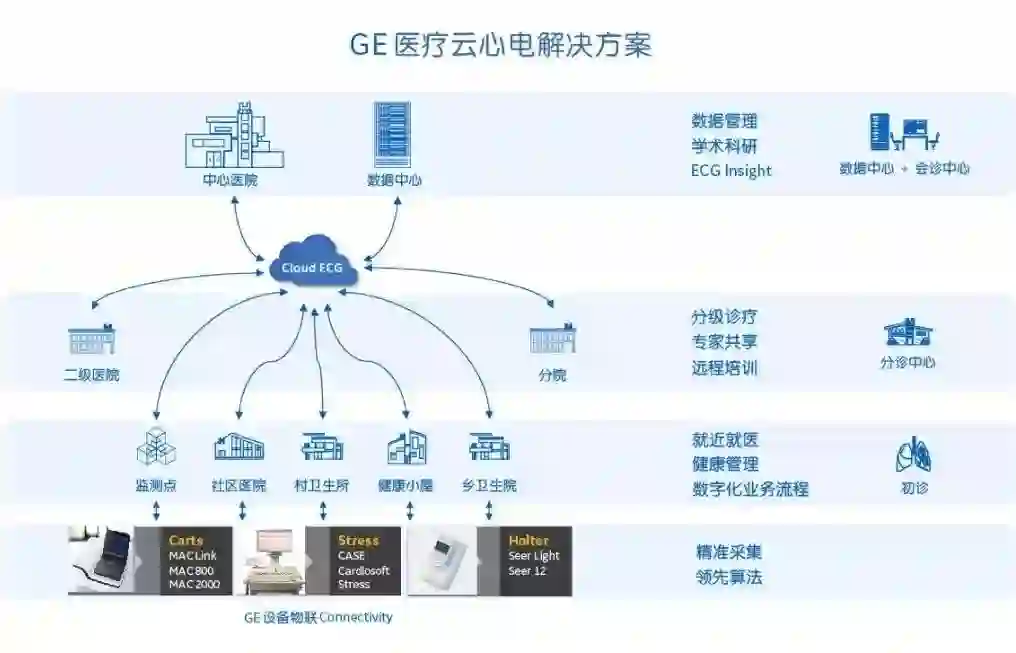 北京医院也采用GE医疗的云心电解决方案,诊断的结果基本上可以在5分钟之内可以回传到社区。