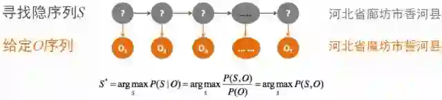 因上述的优化过程中假定各状态相互独立并与上一状态没有联系,故不可避免存在语义上的错误。而如何基于现有的输出序列,对序列进行语义上的修正,那么最直观的想法就是用隐马尔可夫模型(Hidden Markov Model,HMM)解决这个问题,其基于观察序列,求出最优隐序列。其可以抽象为如下图的过程。在给定O序列情况下,通过维特比算法,找出最优序列S: