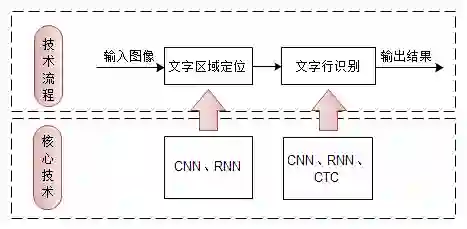 目前,从技术流程上来说,主要分为两步,首先是检测出图像中的文本行,接着进行序列识别。可见,基于深度学习的OCR识别框架相比于传统OCR识别框架,减少了三个步骤,降低了因误差累积对最终识别结果的影响。
