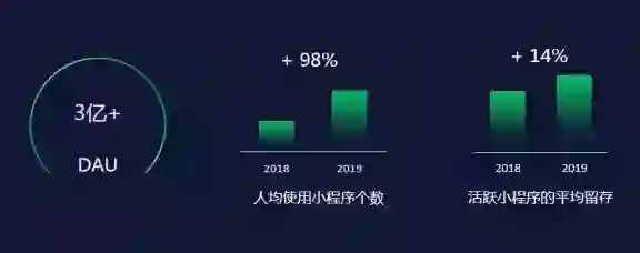 2019年,微信小程序日活突破3亿,人均使用个数和访问时长明显增加,交易GMV达8000亿。我们有充分理由相信2020年将是小程序商业化的加冕之年。