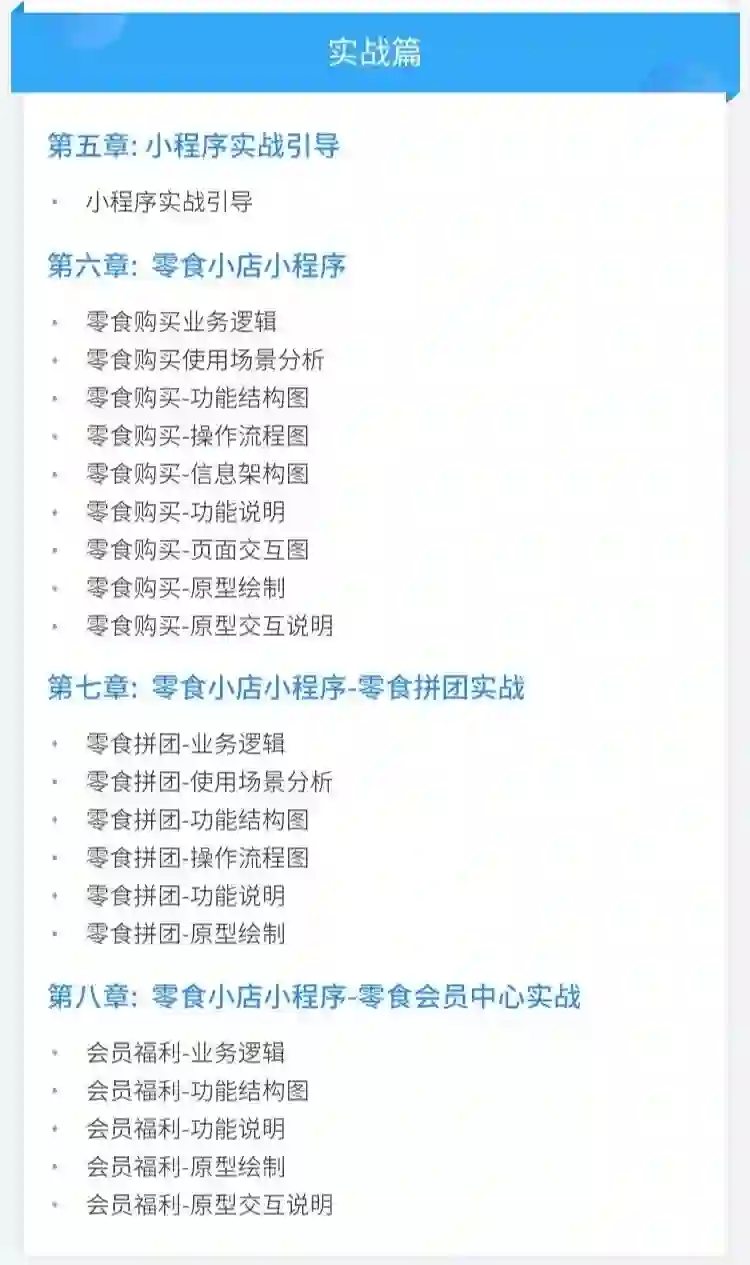 并通过全程项目实战,手把手教你独立完成商业级小程序的全流程产品设计,同时强化自己多端口产品的设计能力,提升职业竞争力。