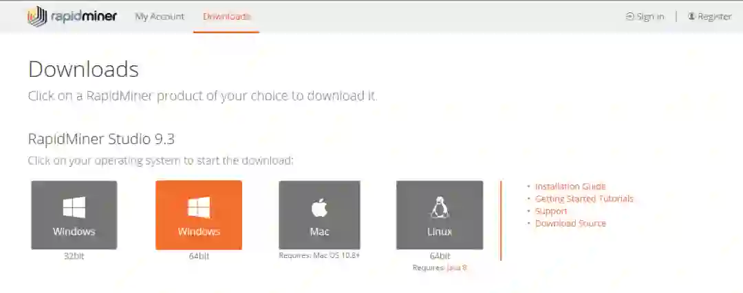 我们需要登录rapidminer的官网来下载这个数据挖掘工具,如下是该网址: