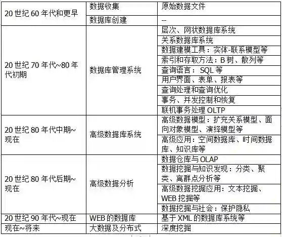 柏拉图曾说过“需要是发明之母”,每一项新技术的诞生都是顺应了这个时代的发展。数据挖掘”也是信息技术自然演化的结果。如下表格展示了该演化过程。