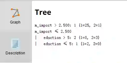 通过“图50:决策树模型运行结果”及“图51:决策树模型结果描述”可以很直观的看到,当m_import(作为女性,你认为工作和生活哪个更重要)>2.5时有25个人会利用业余时间学习、1个人业余时间不学习。通过观察数据,会发现m_import大于2.5的数据都是3(C.全都重要)。接下来我们来看决策树的另一个分支:当m_import(作为女性,你认为工作和生活哪个更重要)<=2.5的时候,通过观察数据,会发现m_import小于等于2.5的数据是1和2的(1.工作,2.生活)。我们的数据还需要进一步判断eduction(学历)。当eduction学历大于5时没有人利用业余时间学习、3个人业余时间不学习。当eduction(学历)小于等于5时2个人利用业余时间学习、没有人业余时间不学习。通过上面表格可以看出eduction(学历)小于等于5的是本科以下学历的。