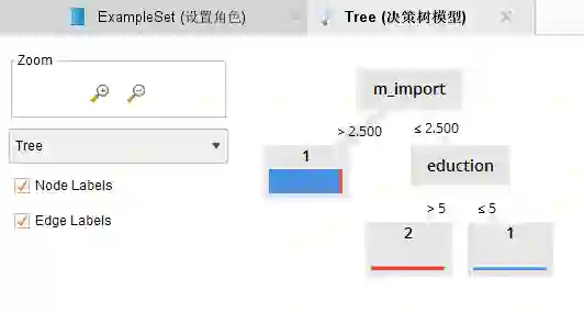 通过“图52:决策树评估中设置的角色”中我们可以看出,我们将study_or_not字段设置成了label标签属性,在Rapidminer中,我们把哪个指标设置成label属性,我们分析的就是哪个指标。也就是笔者想要分析的“工作\带娃的空闲时间是否考虑过学些专业知识提高自己的竞争力”。并且通过上面的映射表可以看出study_or_not等于1是会利用业余时间学习的人,等于2是业余时间不学习的人。