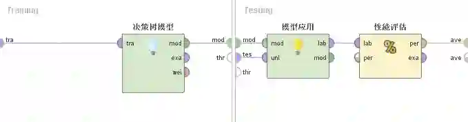 1.在Rapidminer中新建一个流程,名字叫“8决策树评估”。这个流程的主要目的是由于建模过程形成的众多结果,我们没有办法去判断哪个模型最符合现实的情况,因此,我们需要对所建的模型进行评估,通过评估结果来选择预测最准确的那个模型。具体情况如下所示: