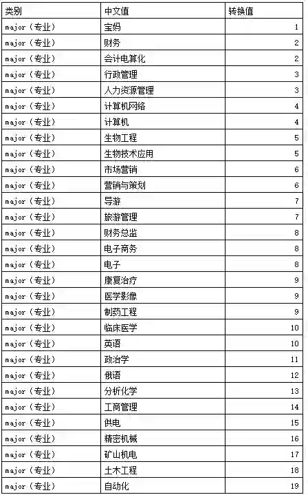 其中专业信息映射:
