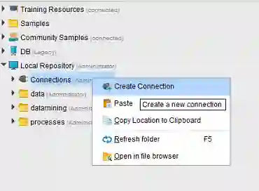 rapidminer软件安装成功后,点击桌面的软件图标,即可打开该软件,由于我们的实例要进行数据库的读写操作。因此,我们需要创建一个数据库连接,笔者提前在电脑上安装了mysql数据库,数据库的安装过程超出了此文章的范围,读者需要提前安装一个数据库,不限于mysql。