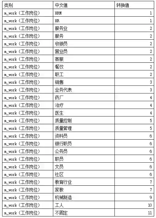 其中工作岗位信息映射: