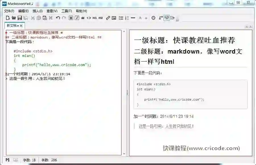 软件截图(左边是编辑区,右边则是实时预览图):