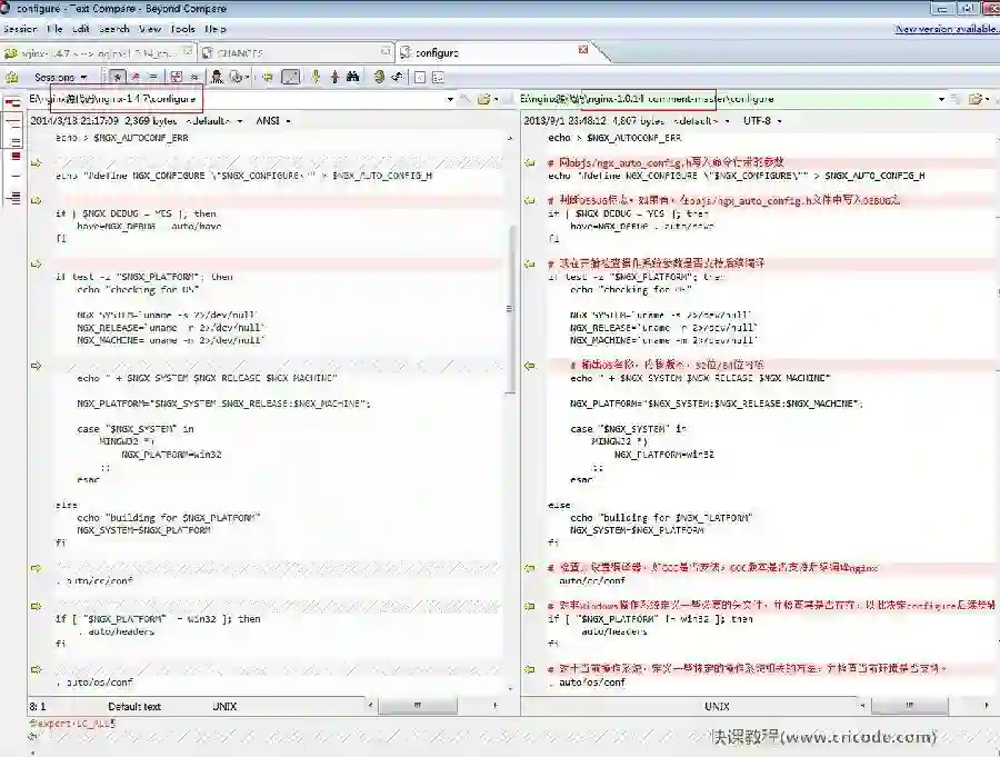 软件截图(比较两个版本的Nginx源代码不同之处):