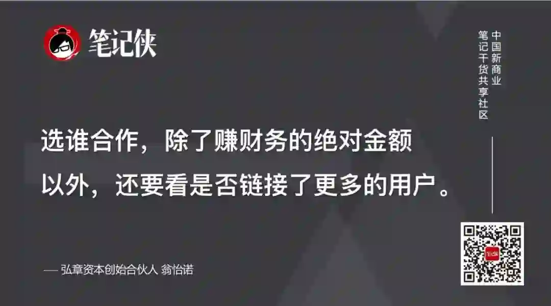因此,选谁合作,除了赚财务的绝对金额以外,还要看是否链接了更多的用户。