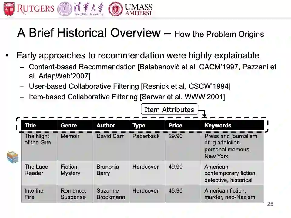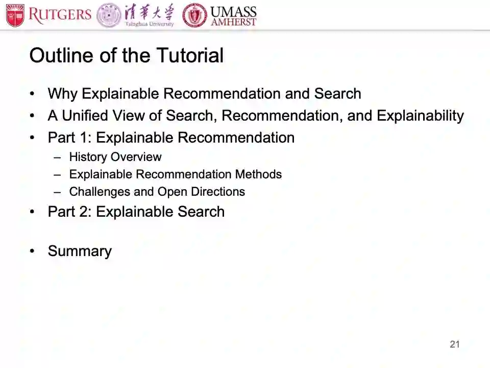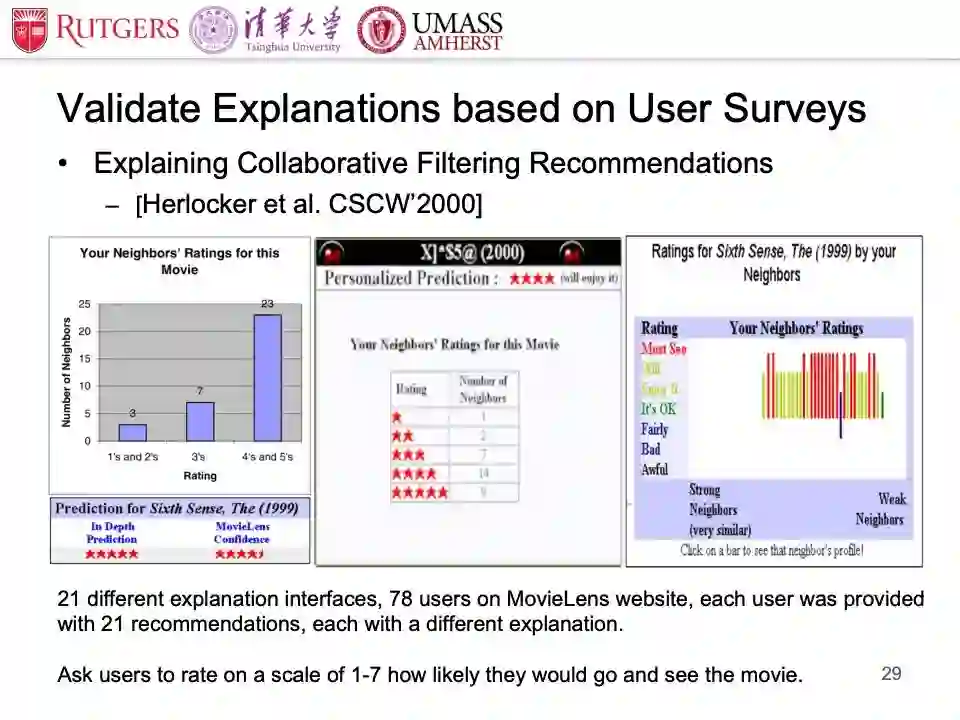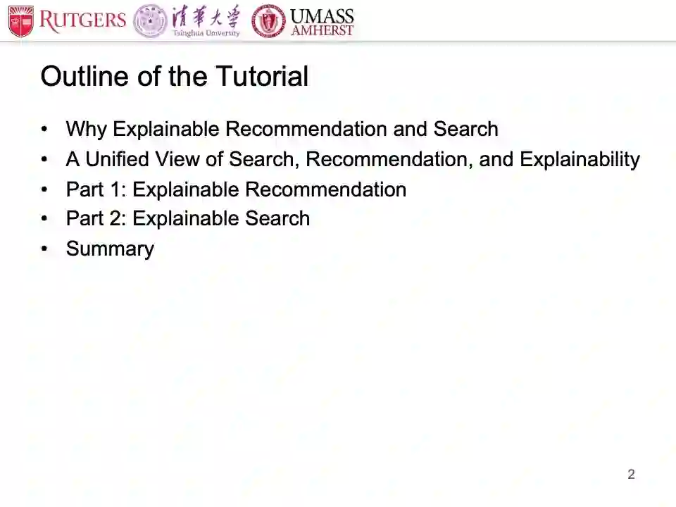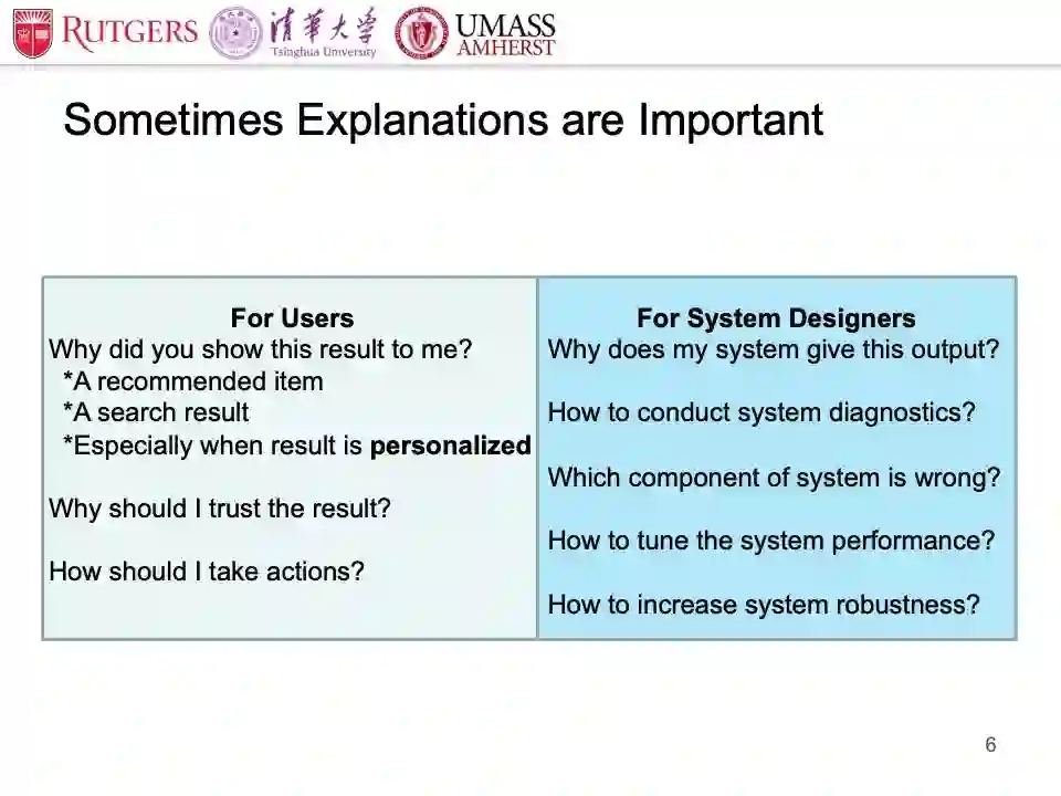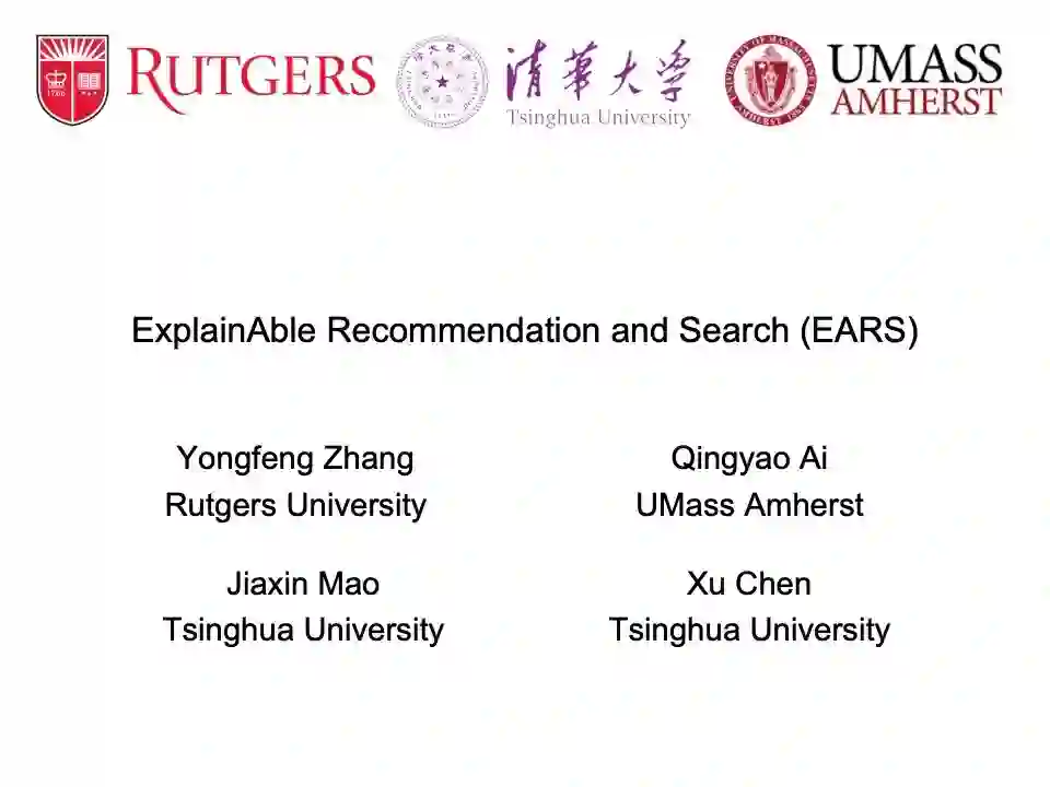 【导读】SIGIR 2019正在法国巴黎如火如荼的召开。小编收集到了SIGIR2019的可解释性体检和搜索教程。可解释的推荐和搜索尝试开发搜索/推荐模型,来保证高质量的推荐或搜索结果,以及可以生成结果的直观解释。这有助于提高系统的透明性、说服力、可信度和有效性。本教程主要介绍可解释推荐和搜索算法的最新研究,以及它们在搜索引擎、电子商务和社交网络等实际系统中的应用。本教程旨在向社区介绍和交流可解释的推荐和搜索方法,并聚集对该研究方向感兴趣的研究人员和实践者进行讨论、思想交流和研究推广。