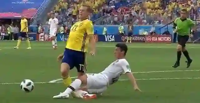 6月18日,在韩国对阵瑞典的比赛中,韩国球员飞铲放倒瑞典球员,主裁判第一时间没判罚点球,但经过场边视频裁判的提醒,在观看了VAR之后决定改判点球。最终,瑞典球员格兰奎斯特主罚点球命中,打进了全场比赛唯一进球,瑞典队以1:0战胜韩国队。