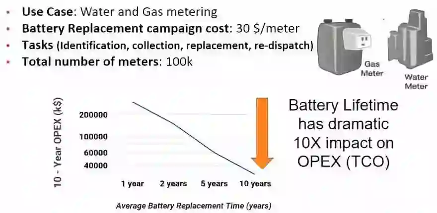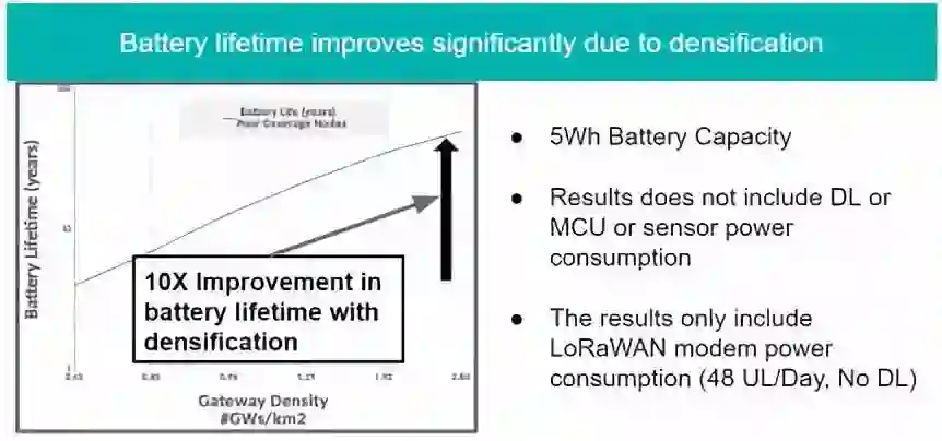 当考虑其他用例时,密集的LoRaWAN网络模型为每一组额外的传感器节省了传感器费用。大多数传感器没有使用20年的要求,节约的成本就不一而论了,但是电池是任何传感器成本的主要驱动因素之一。