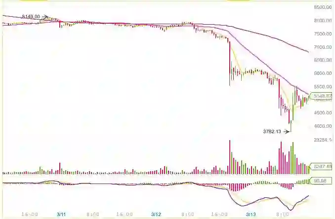 3 月 12 日下午 6 点半开始,比特币从 7211 美元闪跌至 5555.55 美元。今天早上比特币价格再次跳水,半小时再次狂泻近 2000 美元,最低跌至 3782.13 美元,24 小时跌幅超 40%。合约帝数据显示,仅火币、OKEx、币安、BitMEX 四家交易所的单日爆仓量 31.33 亿美元,达到了有史以来的单日最高。爆仓人数超 11 万,也是爆仓人数单日最高。