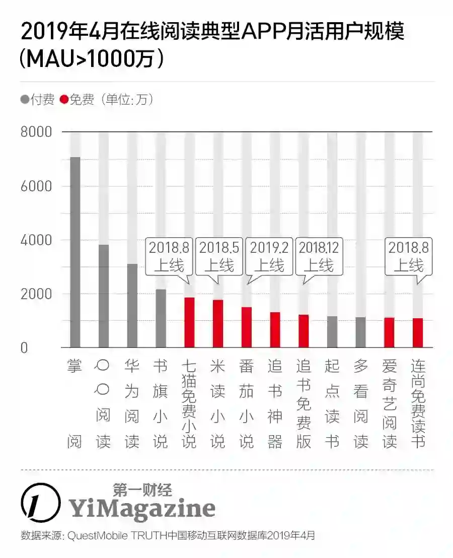 尽管这些App的营收和月活还无法和阅文这样的平台相比,但其增长速度惊人。比如成立于去年5月的米读小说,由内容聚合平台趣头条公司孵化,仅用了半年时间便突破2000万月活,目前,其用户日人均使用时长高达150分钟。今年以来,米读小说、连尚文学等免费阅读App日活纷纷达到1000万,七猫小说、番茄小说等则陆续登上App Store图书前十名榜单。