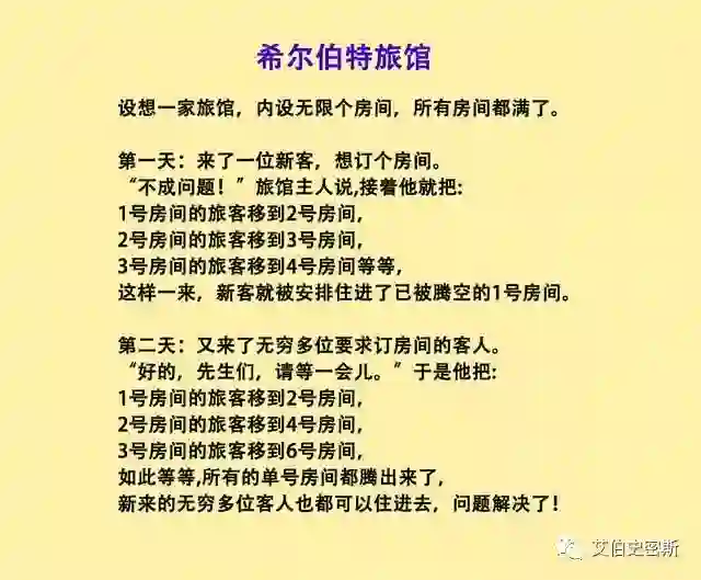 要理解其中的原理,需要对“无穷”这个概念有深刻的理解,“希尔伯特旅馆”大家可能听过。