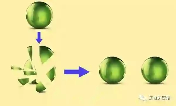 一个三维实心球,必定存在一种办法分成有限部分,然后仅仅通过旋转和平移,就可以组成两个和原来完全相同的球(半径相同,密度相同……所有性质都相同)。