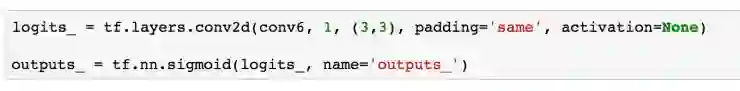 在 TensorFlow 中也封装了对 Upsample 的操作,我们使用 resize_nearest_neighbor 对 Encoder 卷积的结果 resize,进而再进行卷积处理。经过三次 Upsample 的操作,我们得到了 28 x 28 x 64 的数据大小。最后,我们要将这个结果再进行一次卷积,处理成我们原始图像的大小。