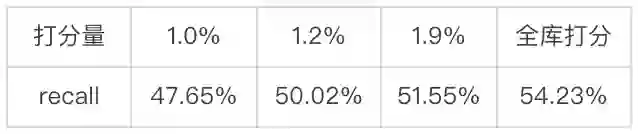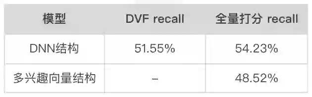 为了高效进行大规模内积近邻检索,现有两段式解决方案的模型结构被限制为用户向量与 item 向量之间直接内积计算的向量结构,而这一要求大幅限制了模型表达能力。而在二向箔算法体系下,模型结构没有任何限制,可以和后链路的点击率、转化率预估等任务用相似的模型。上述结果对比了 DNN 结构和向量结构的离线 recall。其中 DNN 结构为本文采用的模型结构(见第 3.4 节);多兴趣向量结构与DNN结构拥有相同的特征输入,同时采用 transformer 来提取用户的多峰兴趣向量(参考 comiRec[4]),然后多个兴趣向量分别召回 top-1500 再统一排序产出最终 top-1500。由上表可知,去掉向量结构限制后,召回模型的检索精度天花板获得大幅提升,全量打分情况下离线 recall 绝对值提升 5.71%,DNN 结构下二向箔检索的离线 recall 也比向量结构下的全量打分 recall 高 3.03%。