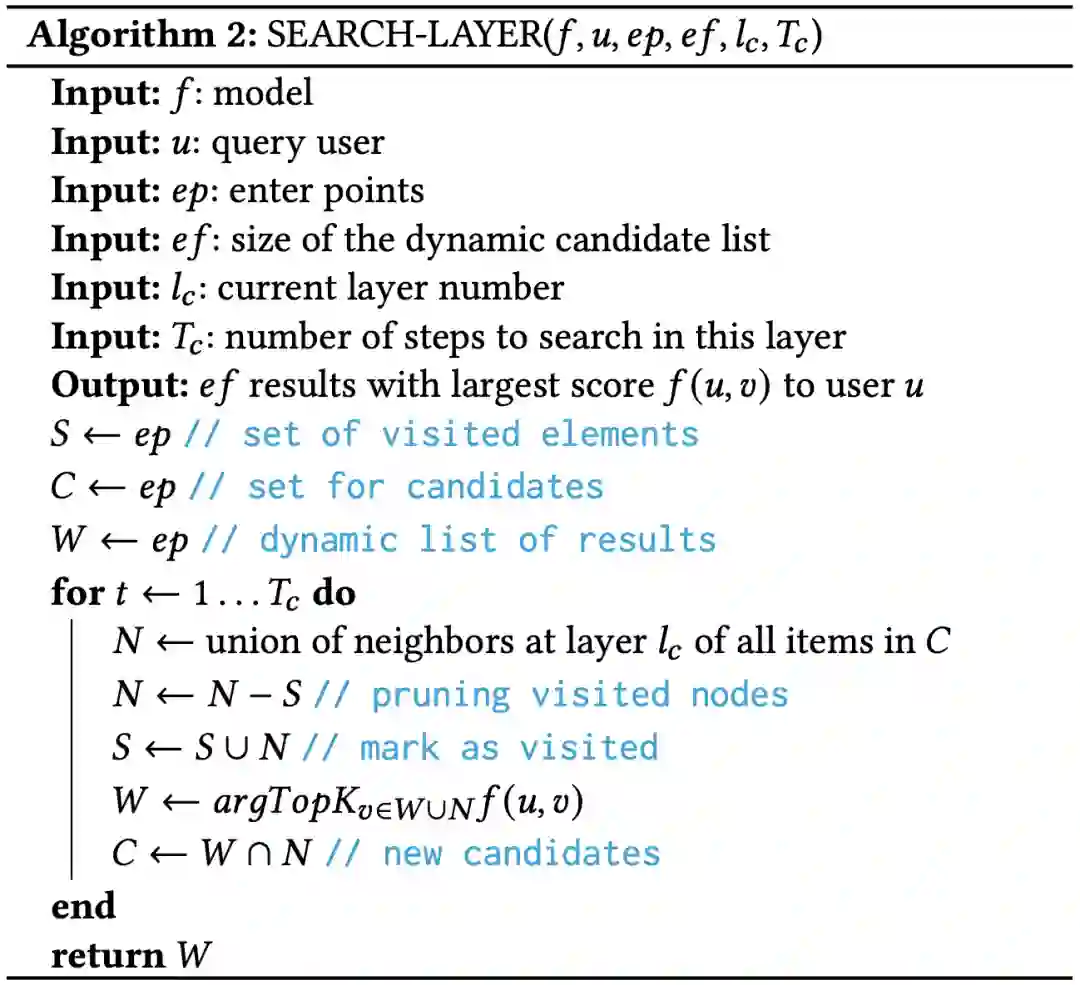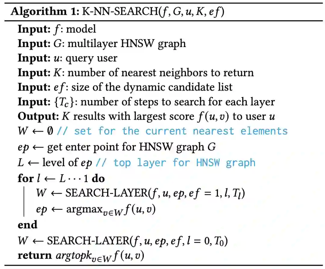 ,从上往下逐层检索(通过 SEARCH-LAYER 函数)得到每层打分最高的候选项