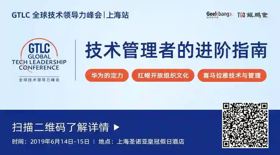 更多精彩议题,请前往 GTLC 上海 2019 一探究竟,一个汇聚 500+ 位高端技术管理者,30+ 位重磅嘉宾的技术领导力盛会,千万不要错过哦!