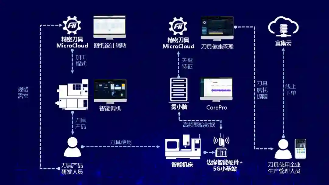 智能制造:边缘运算三辆马车(数控网关+工业移动网、雾小脑、工业手机)和赋能服务三剑客(Fii Cloud云平台、MicroCloud专业云、工业人工智能),打通了制造业从生产现场、到云平台、再到前端应用的全流程。